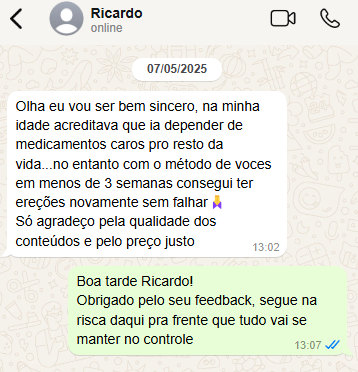 Sim! O método foi desenvolvido justamente para homens que já tentaram diversas alternativas sem sucesso. Ele atua na causa raiz do problema, combinando técnicas naturais, mudanças simples no estilo de vida e gatilhos psicológicos.